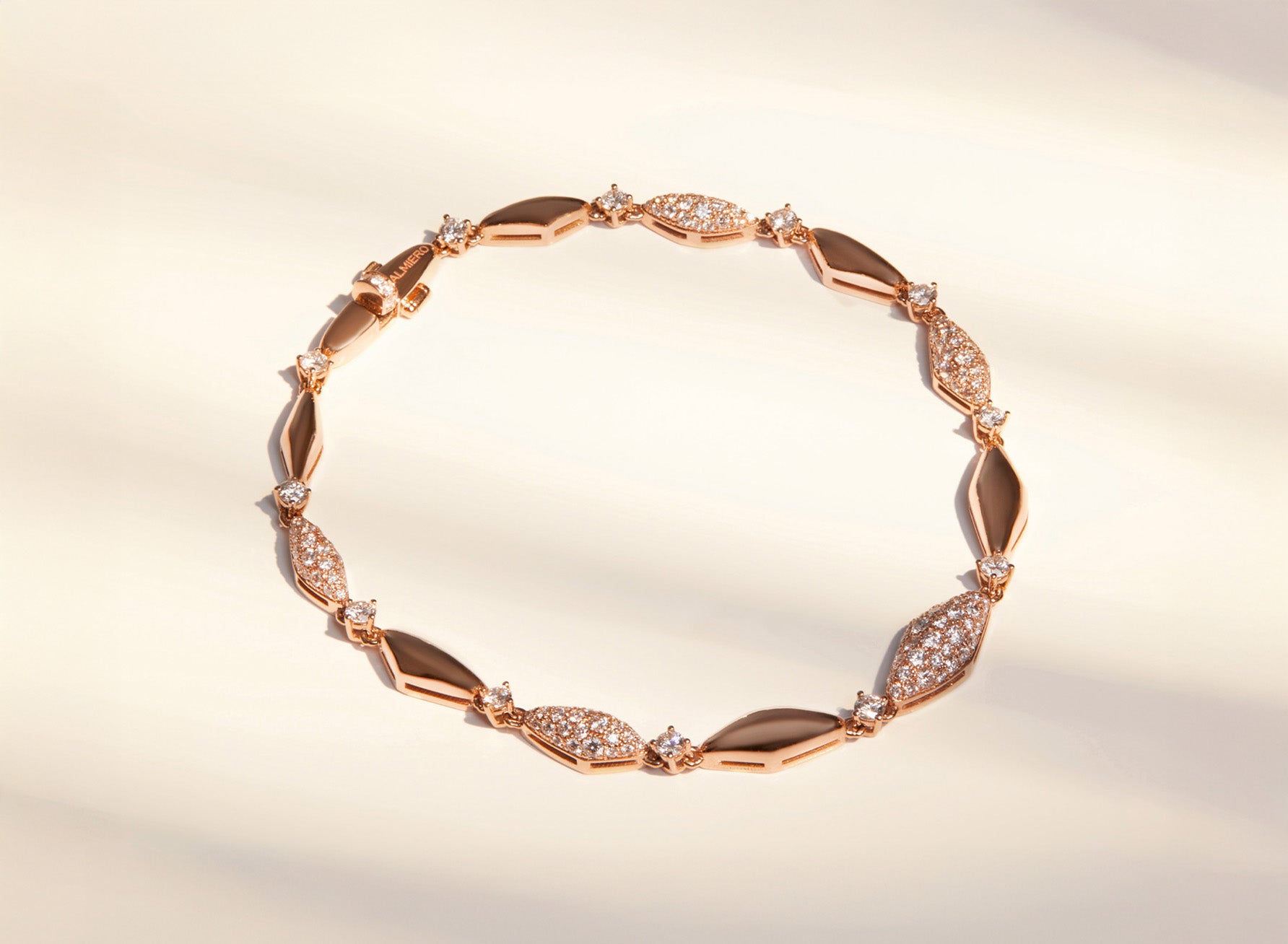 The Decò collection embodies modernity influenced by the aesthetic principles of the Art Deco era. With its alternating geometric patterns crafted from gold and diamonds, Decò brings timeless style and a touch of glamour to contemporary life, making every day a celebration of elegance and sophistication.