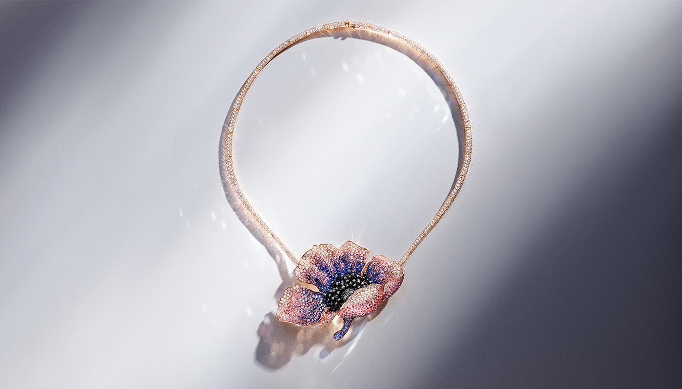 A poetic unveiling of the poppy, dancing freely with the wind. More than mere jewellery, The Poppy Undressed collection offers a sensory journey celebrating nature's innate beauty and grace. Crafted with exquisite materials, their intricate details echo the poppy's vibrant hues and delicate charm.