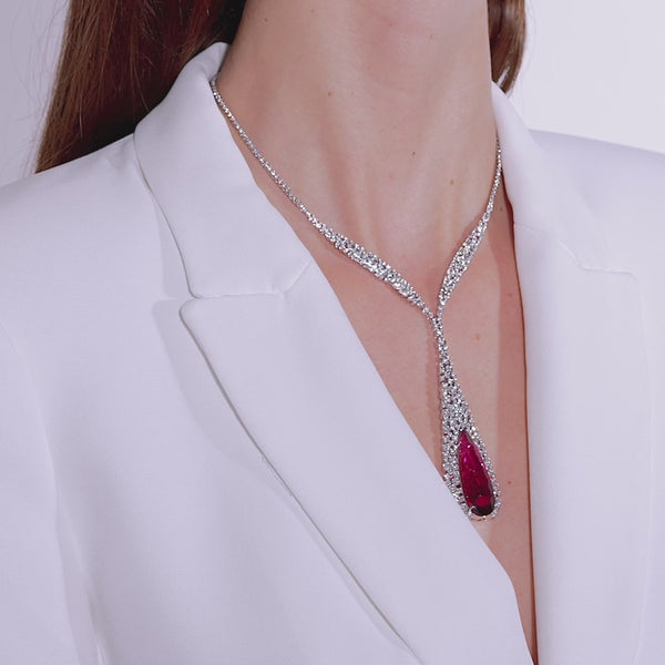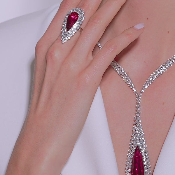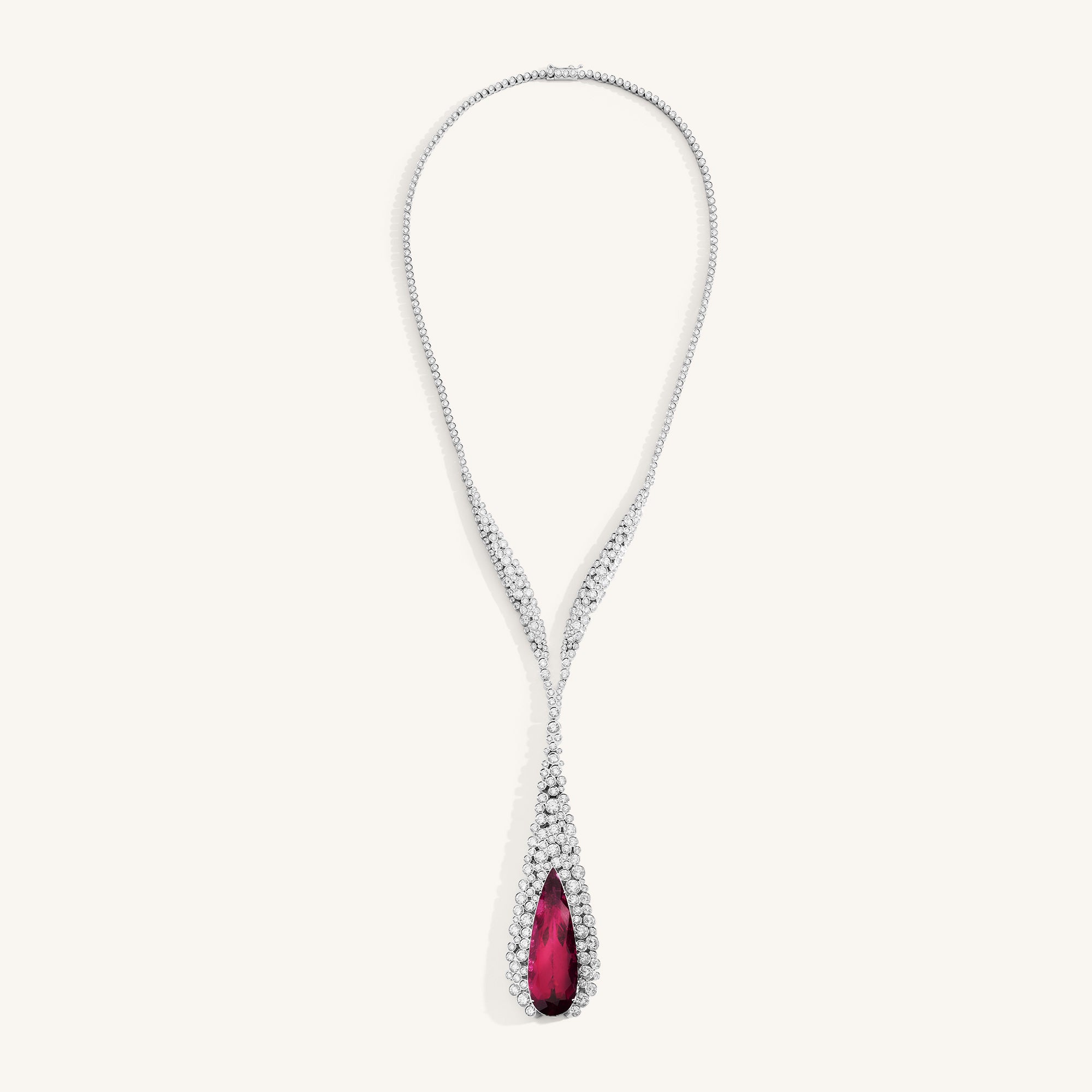 Incanto Collier by Palmiero, featuring white diamonds and a central rubellite on white gold.