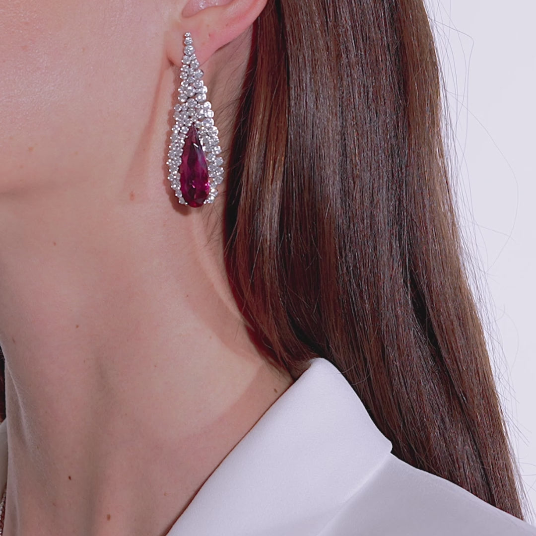 Incanto earrings by Palmiero, featuring white diamonds and a central rubellite on white gold.