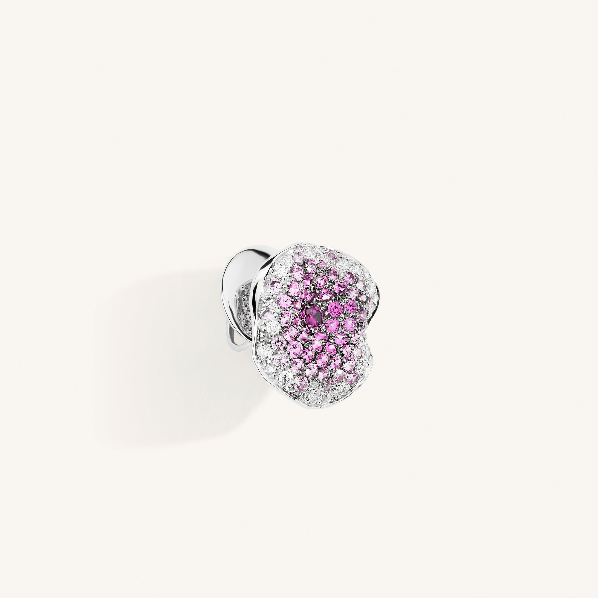 Moon Flowers earrings by Palmiero, featuring white diamonds and pink sapphires on white gold.