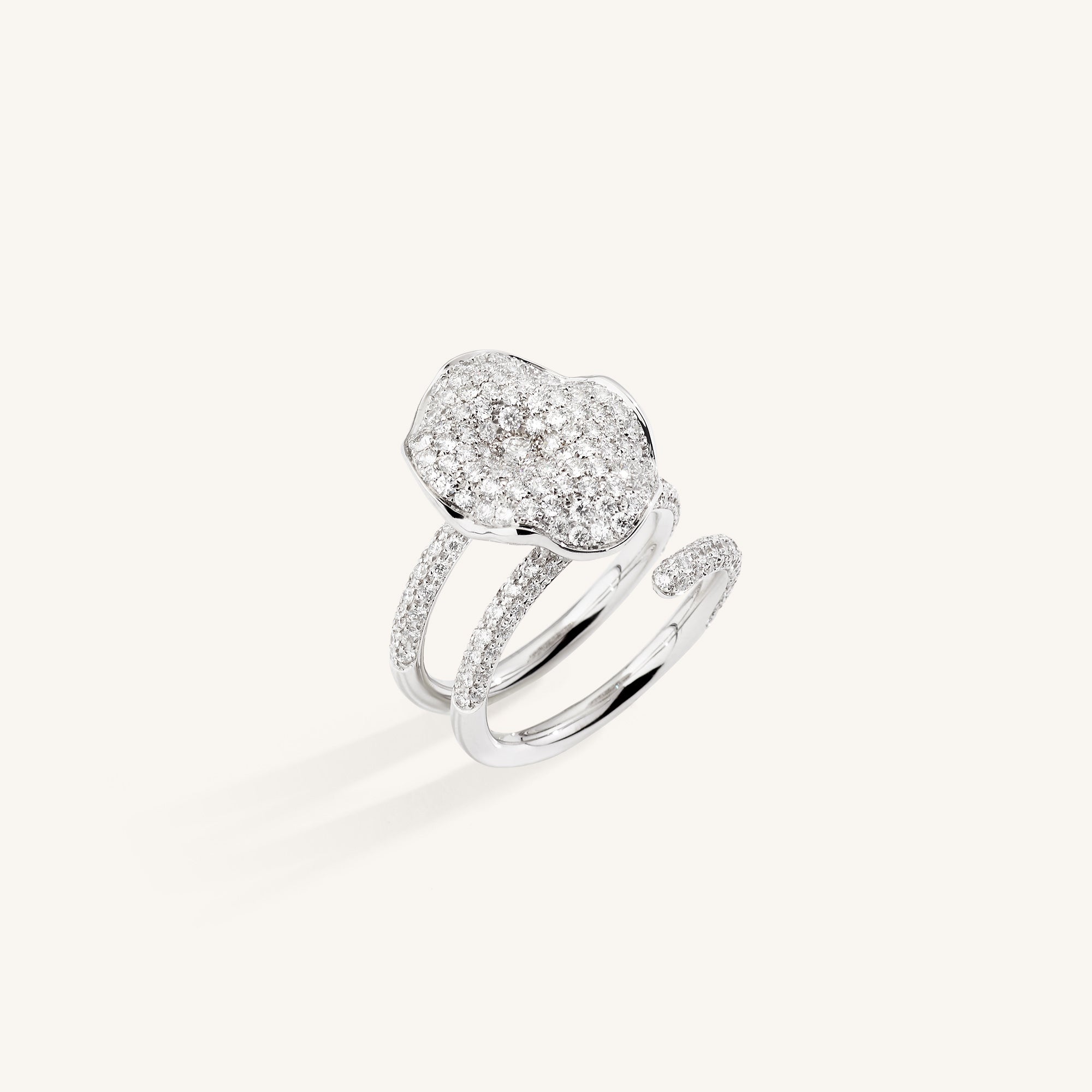 Moon Flowers ring by Palmiero, featuring white diamonds on white gold.