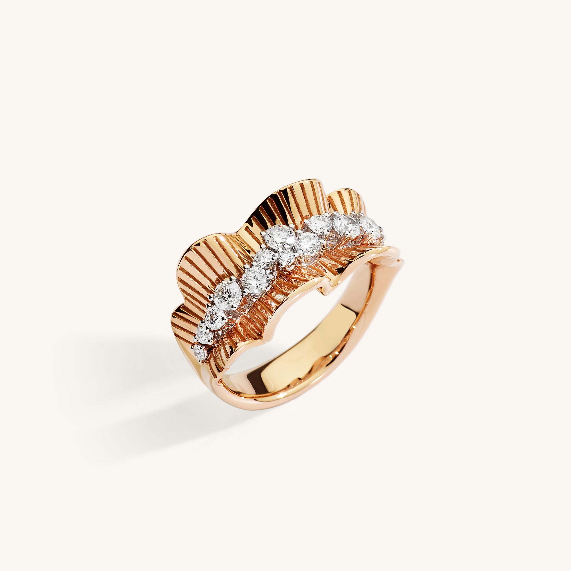 Rays of Sun ring by Palmiero, featuring white diamonds on rose gold.