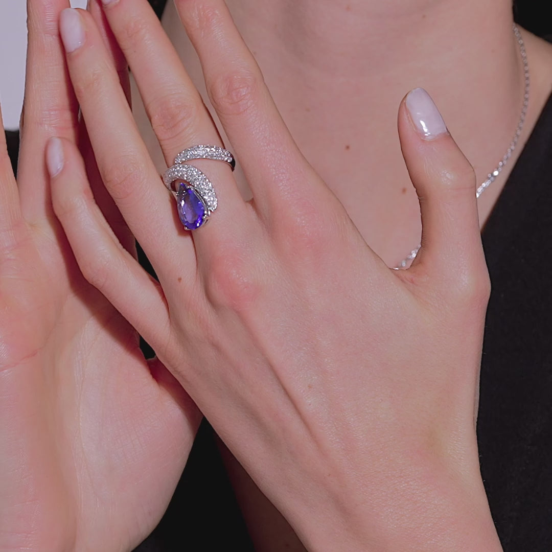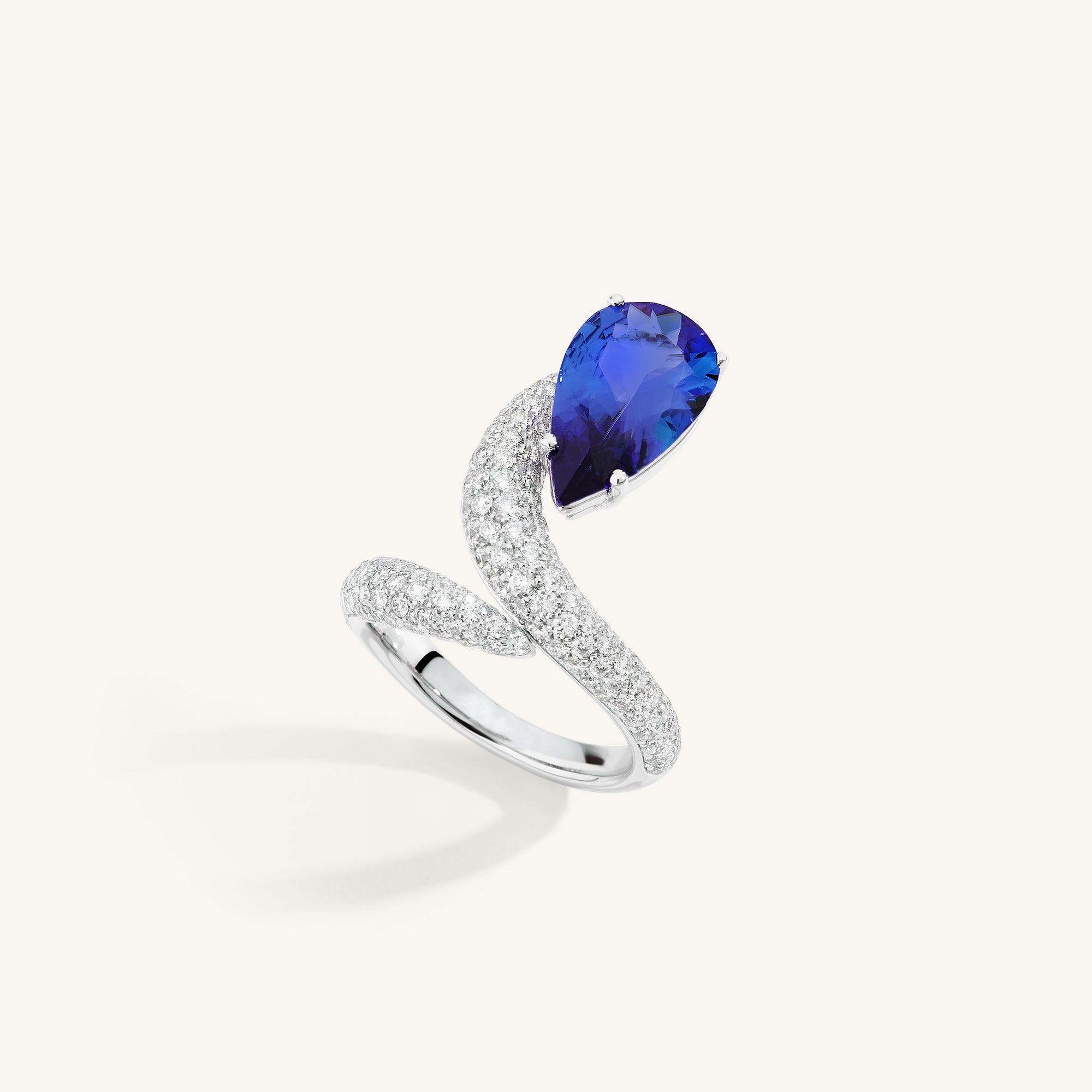 Venere ring by Palmiero, featuring white diamonds and a central tanzanite on white gold.